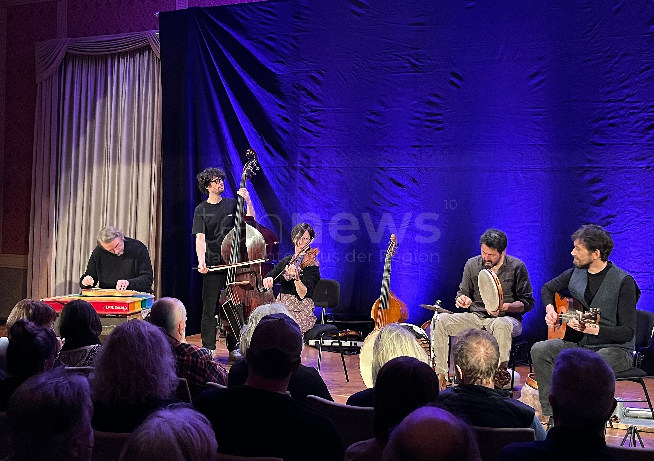 Mehrstimmiger Gesang im Südtiroler Dialekt, ganz ohne elektronische Verstärkung, sowie eine außergewöhnliche Instrumentenvielfalt prägten den Abend. Das Publikum belohnte das seit fast 18 Jahren bestehende Ensemble mit großem Applaus und mehreren Zugaben.